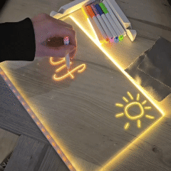Absolutely. The board uses low-voltage LED lights and non-toxic, water-based markers. There’s no heat, no radiation, and no harmful chemicals. Safe for kids 3+ under supervision.