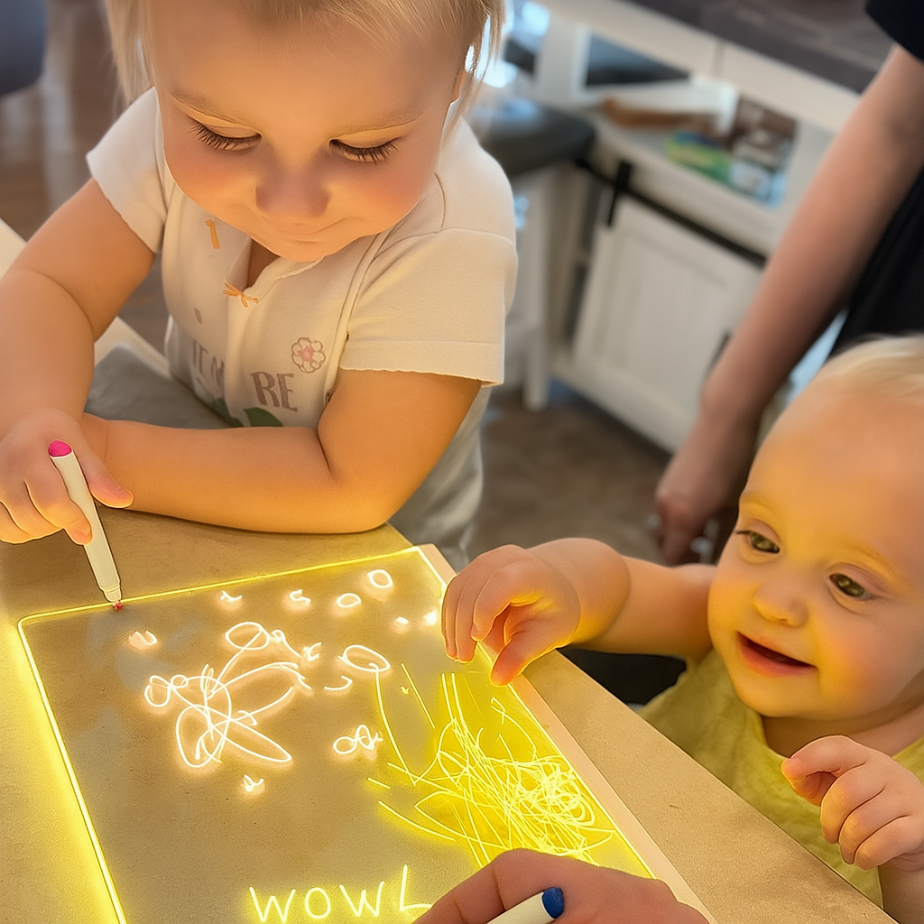 ✓ GlowSketch™ LED Drawing Surface — High-clarity acrylic panel with edge-lit LED glow.